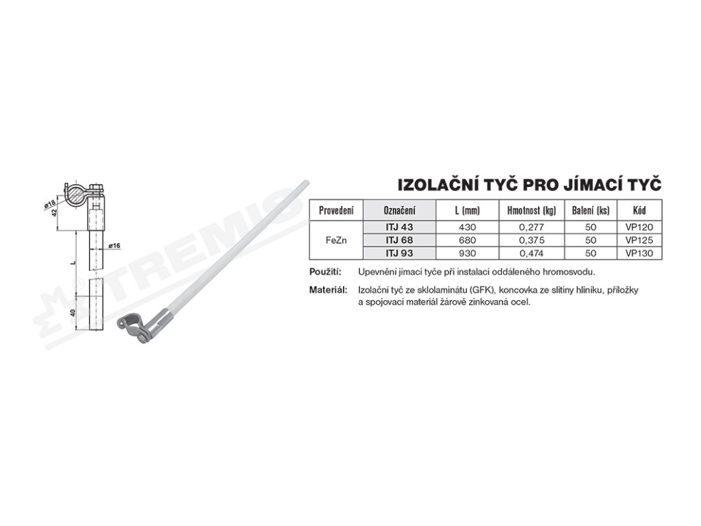ITJ 93 IZOLAČNÍ TYČ PRO JÍMACÍ TYČ 930mm