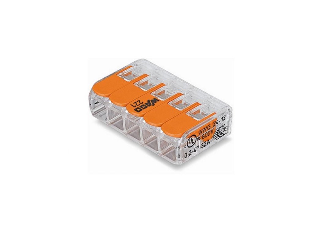 Spojovací konektor s pákami, řada 221, CAGE CLAMP® Užívejte si pohodlné elektrické instalace se spojovacími konektory s páčkami (číslo položky 221-415). Od zapojení interkomových systémů až po instalaci elektrických trub je spojování různých typů vodičů rychlé a jednoduché s kompaktními spojovacími konektory WAGO řady 221, které vám umožňují rychle a bezpečně připojit různé typy vodičů. Jmenovitý proud a napětí jsou důležitými parametry při výběru spojovacího konektoru, protože určují, jak lze produkt použít. Tento produkt má jmenovité napětí 450 V a jmenovitý proud 41 A, takže je vhodný pro aplikace s vysokým zatížením. Vodiče by měly být ke spojovacím konektorům s páčkami připojovány pouze tehdy, pokud je délka jejich odizolování mezi 12 mm a 14 mm. Tento produkt je vybaven vodičovými svorkami a využívá technologii CAGE CLAMP®. Naše spolehlivé a bezúdržbové připojení CAGE CLAMP® usnadňuje spojování všech typů vodičů bez nutnosti jejich přípravy. Například není nutné krimpovat koncovky vodičů. Rozměry výrobku jsou 16 x 10,1 x 21,1 mm (šířka x výška x hloubka). V závislosti na typu vodiče je spojka s páčkami vhodná pro průřezy vodičů od 0,5 mm2 do 6 mm2. Spojka WAGO řady 221 s páčkami zaujme svým inovativním designem pro různé průřezy vodičů. Proto má spojka WAGO vybavená páčkou jedinečnou ochrannou známku v oblasti techniky elektrického propojení. Ploché páčky, které bezproblémově zapadají do základny konektoru 221, se v zavřeném stavu chovají jako odlitek a lze je úhledně umístit do jakéhokoli krytu bez rušivých hran. Díky širokému designu každé páčky lze všechny bez problémů ovládat bez použití nářadí pro pohodlné zakončení vodičů. Průhledné pouzdro ukazuje robustní technologii a umožňuje okamžitou vizuální kontrolu správného kontaktu plných, slaněných i jemně slaněných vodičů. Konstrukce páček, připomínající klávesy klavíru, dokonale kombinuje funkční a estetickou technologii připojení „Made by WAGO“. Tento produkt je určen pro specifické aplikace v prostředí s nebezpečím výbuchu (viz technický list produktu).Doplňkové parametry
